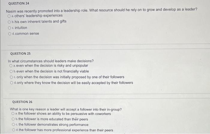 Solved Nasim Was Recently Promoted Into A Leadership Role Chegg Com